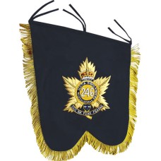 Hand-stitched embroidered pipe banner. Please provide a photograph, drawing, or cap badge of the design you would like reproduced as a pipe banner. Custom designs are always welcome, with an estimated delivery time of approximately two weeks.